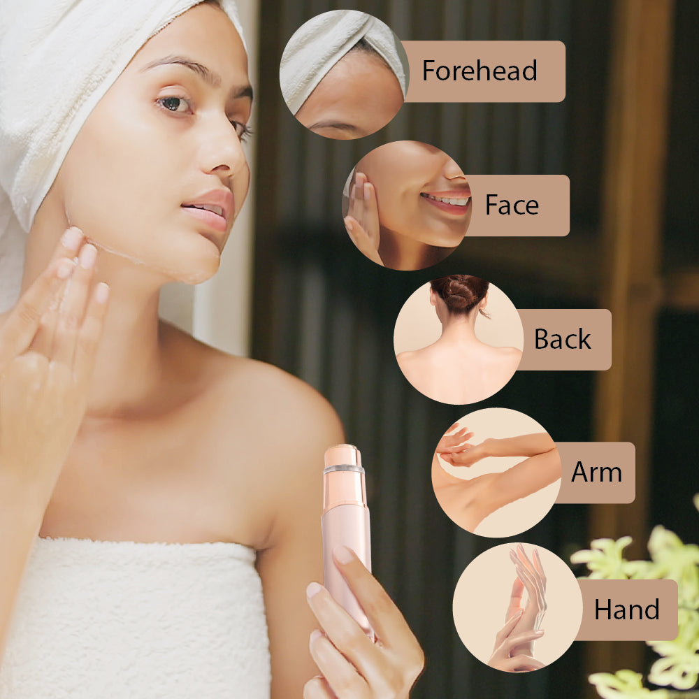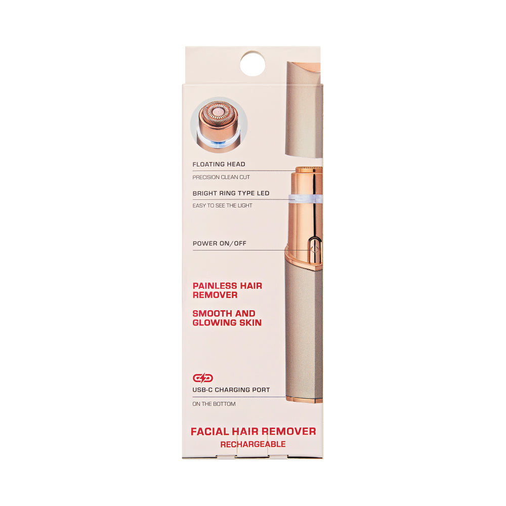 Effortlessly remove unwanted facial hair with this sleek, pain-free facial hair remover. Designed with 3D floating blades and a luxe 18K gold finish, it offers smooth results in a portable, USB-C rechargeable design.
