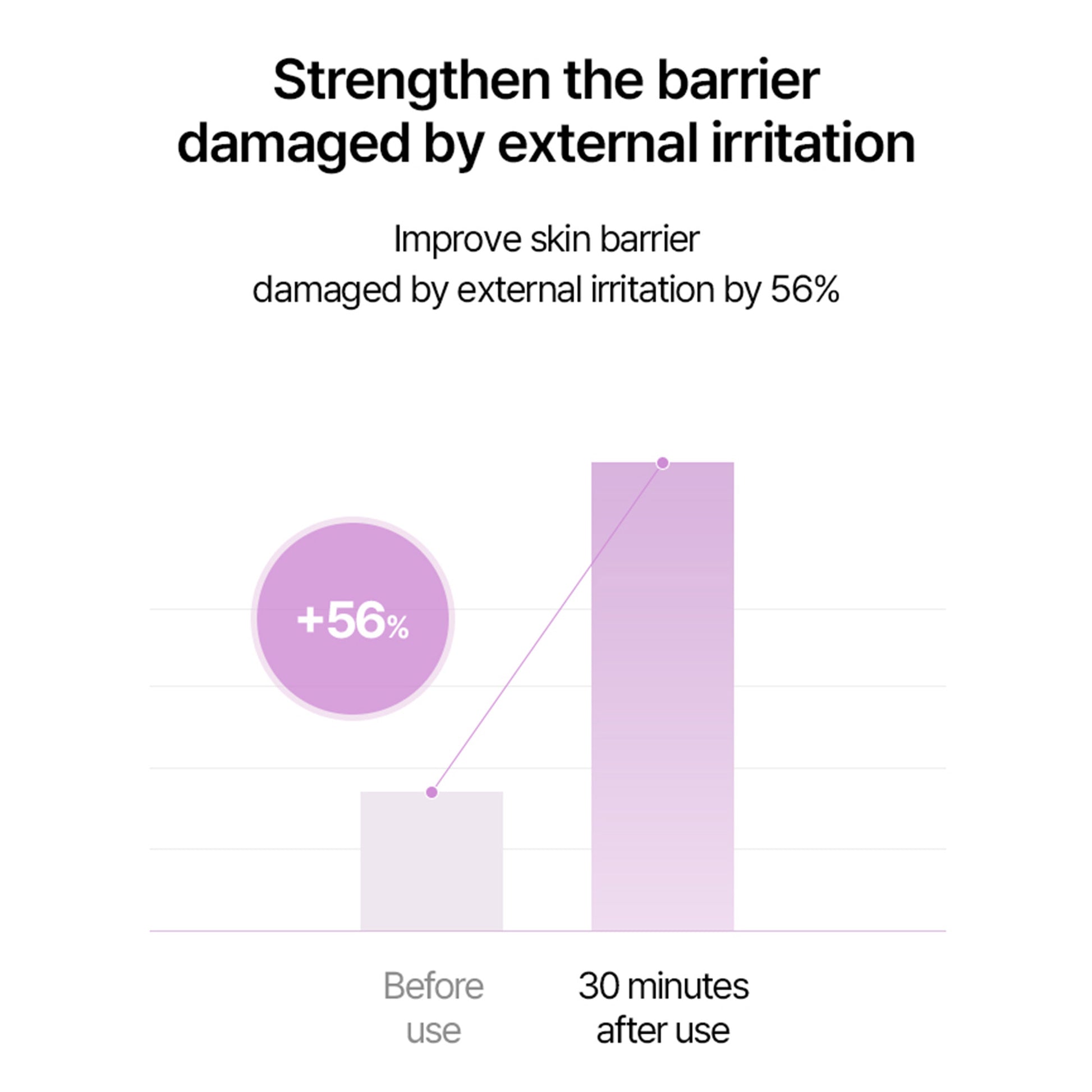 Helps calm irritation by 48% while reinforcing a stronger moisture pathway for healthier skin. -