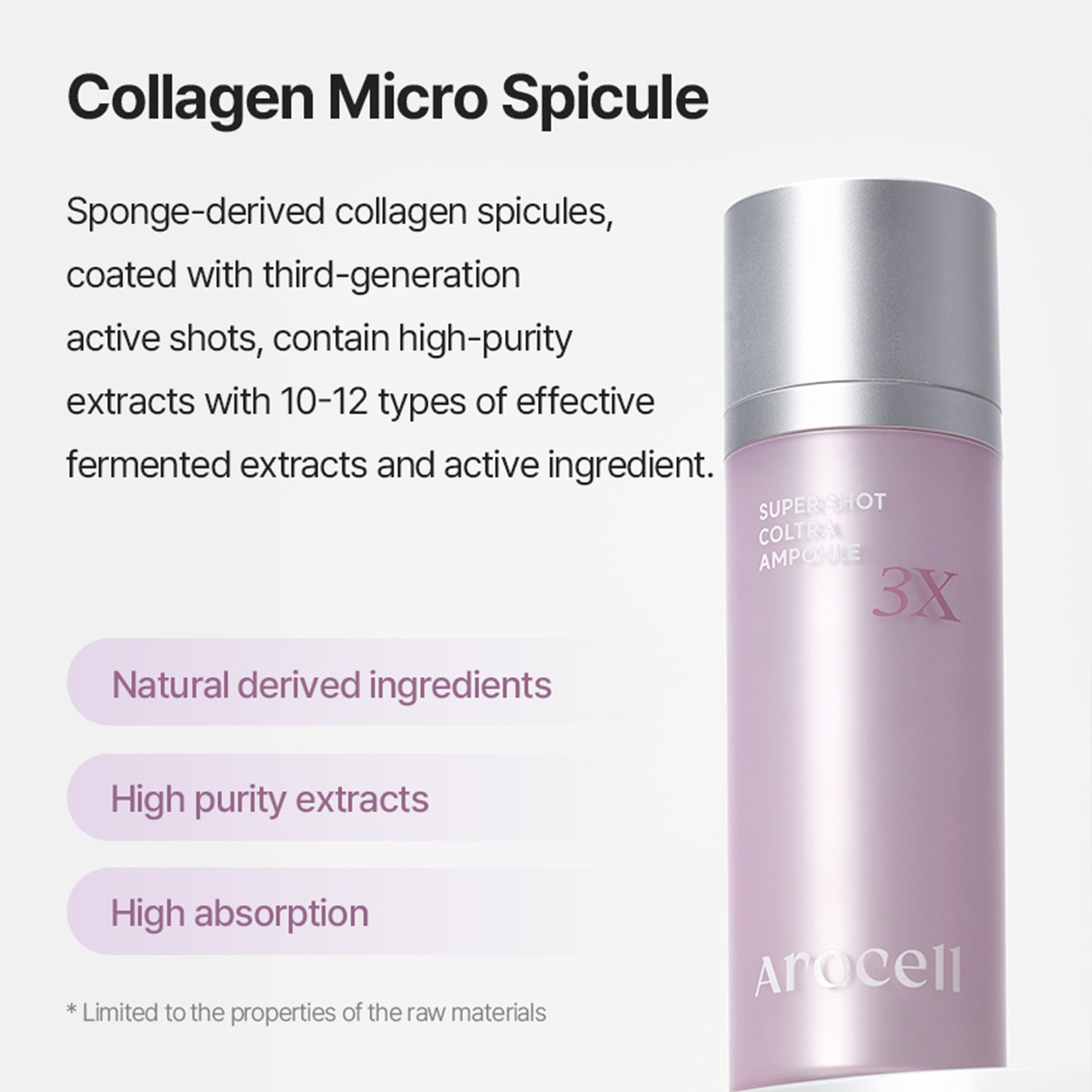 Arocell’s Super Shot Coltra Ampoule is a high-performance Korean collagen ampoule powered by micro collagen spicules for deeper absorption and faster results. This intensive collagen serum enhances radiance, soothes irritation, and strengthens the skin barrier—delivering visible improvements in glow and skin recovery within 2 weeks