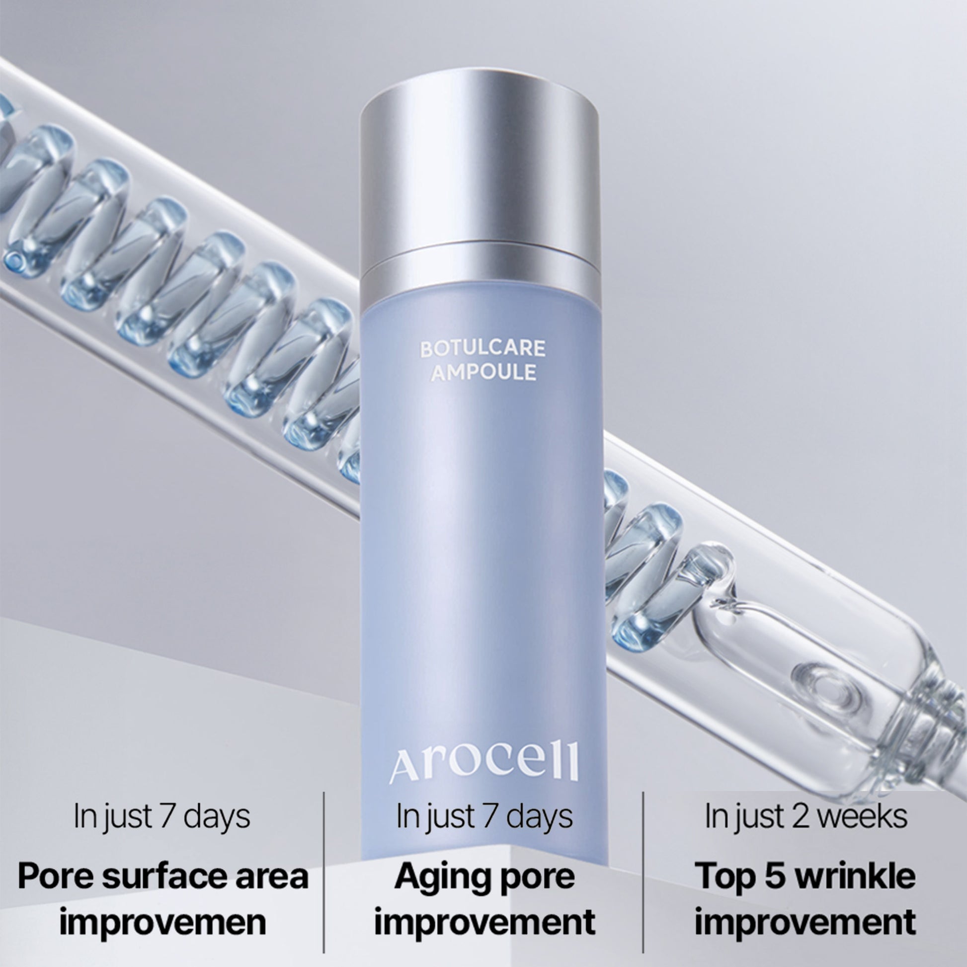 Arocell Botulcare Pore Lifting Ampoule delivers fast pore tightening and wrinkle smoothing with patented botulinum peptide and MTD absorption technology. Clinically tested to refine pores, improve texture, and boost skin firmness in just 7 days. Hydrating and brightening formula with niacinamide, panthenol, and ceramides for smoother, lifted, porcelain-like skin.