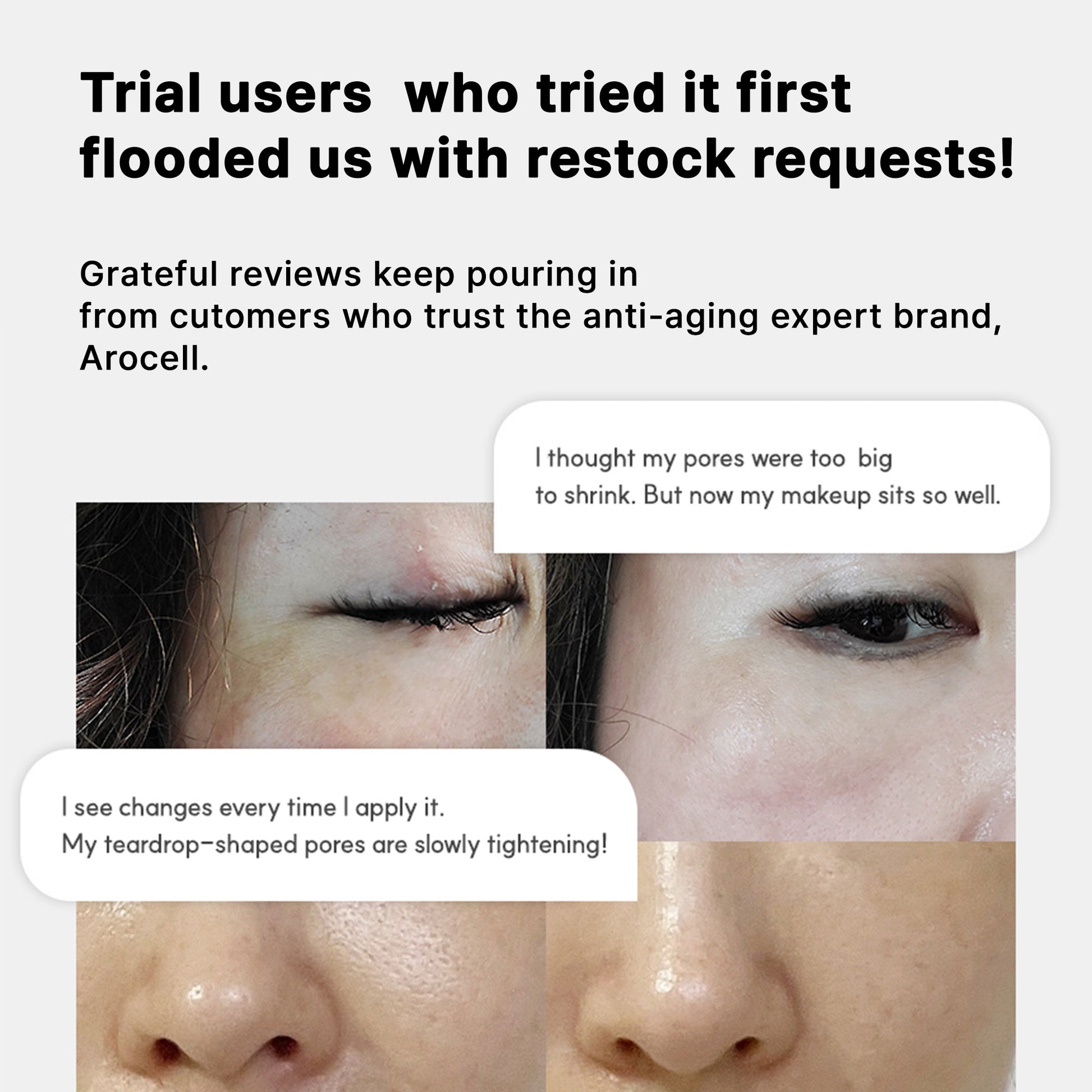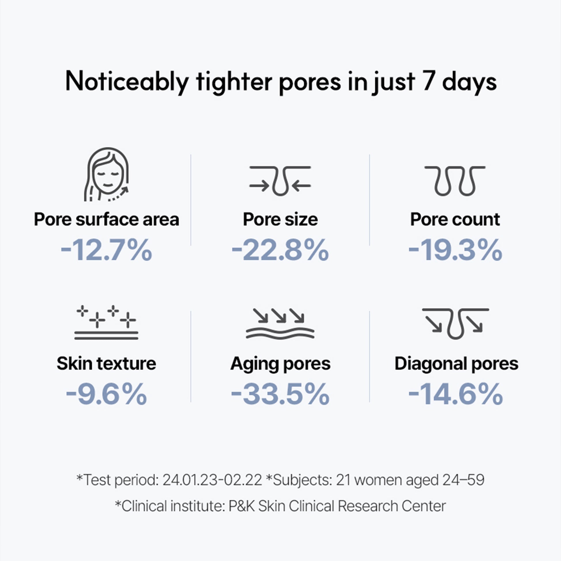 Improves pore size, pore count, diagonal lines, and aging pores for a smoother, porcelain-like look. -