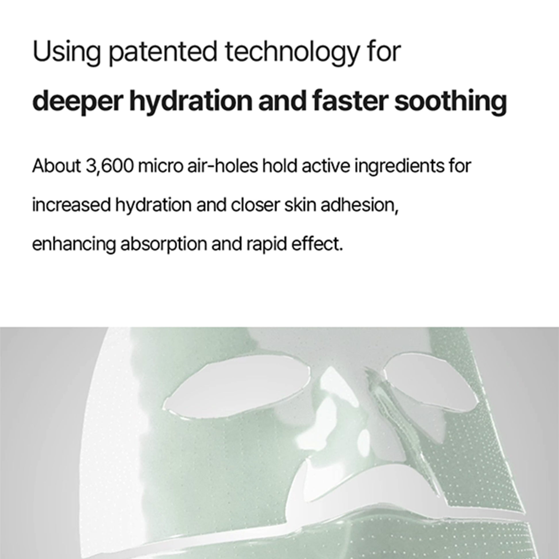 A lightweight cooling gel mask that instantly soothes irritated skin, reduces redness, and boosts hydration. With patented micro air-hole Cica gel and panthenol, it calms heat-stressed skin, smooths rough texture, and improves spots and blemishes over time. Perfect for sensitive, acne-prone, or easily irritated skin needing fast relief and deep moisture.