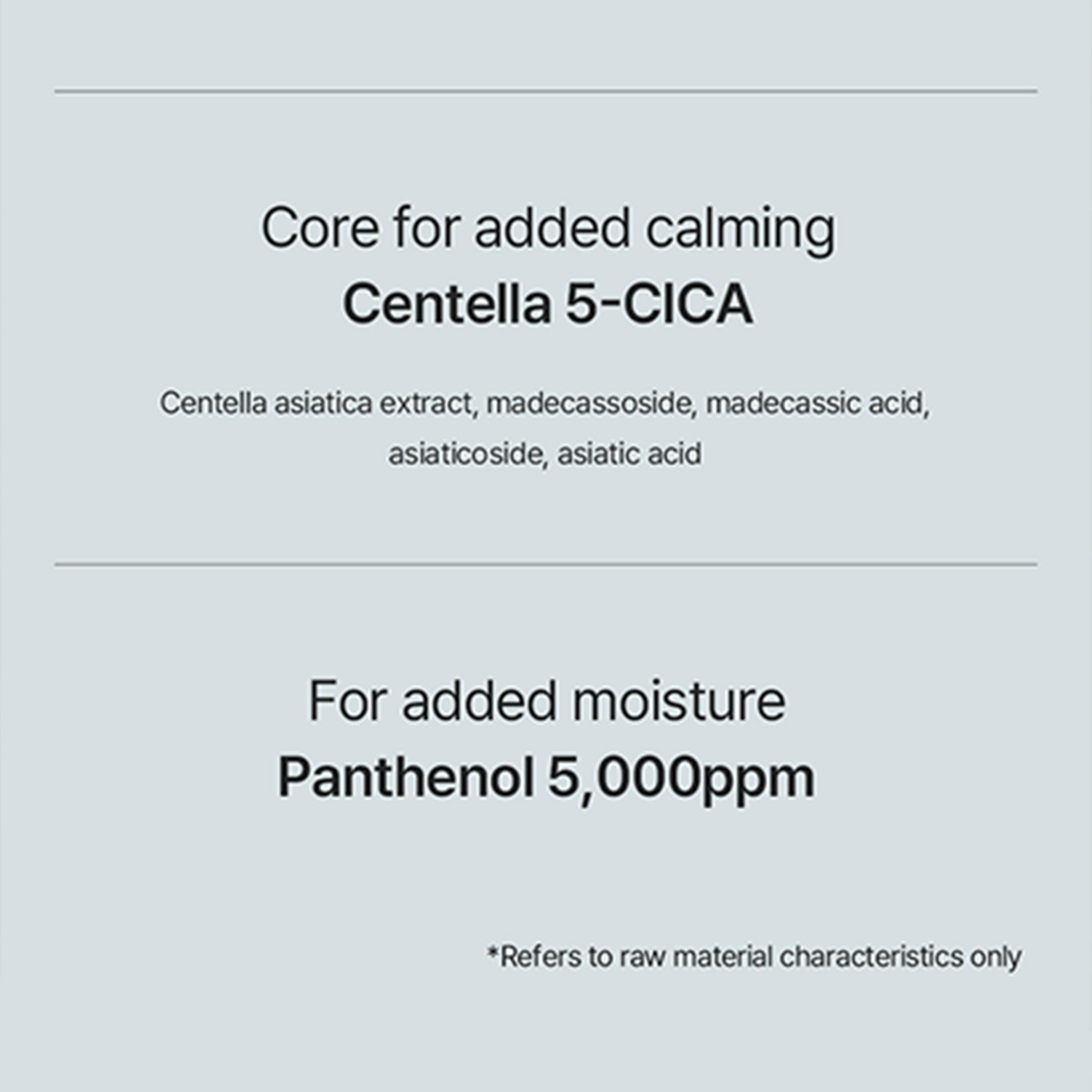 Formulated with Centella 5-CICA complex to help soothe irritation and support stressed skin. -