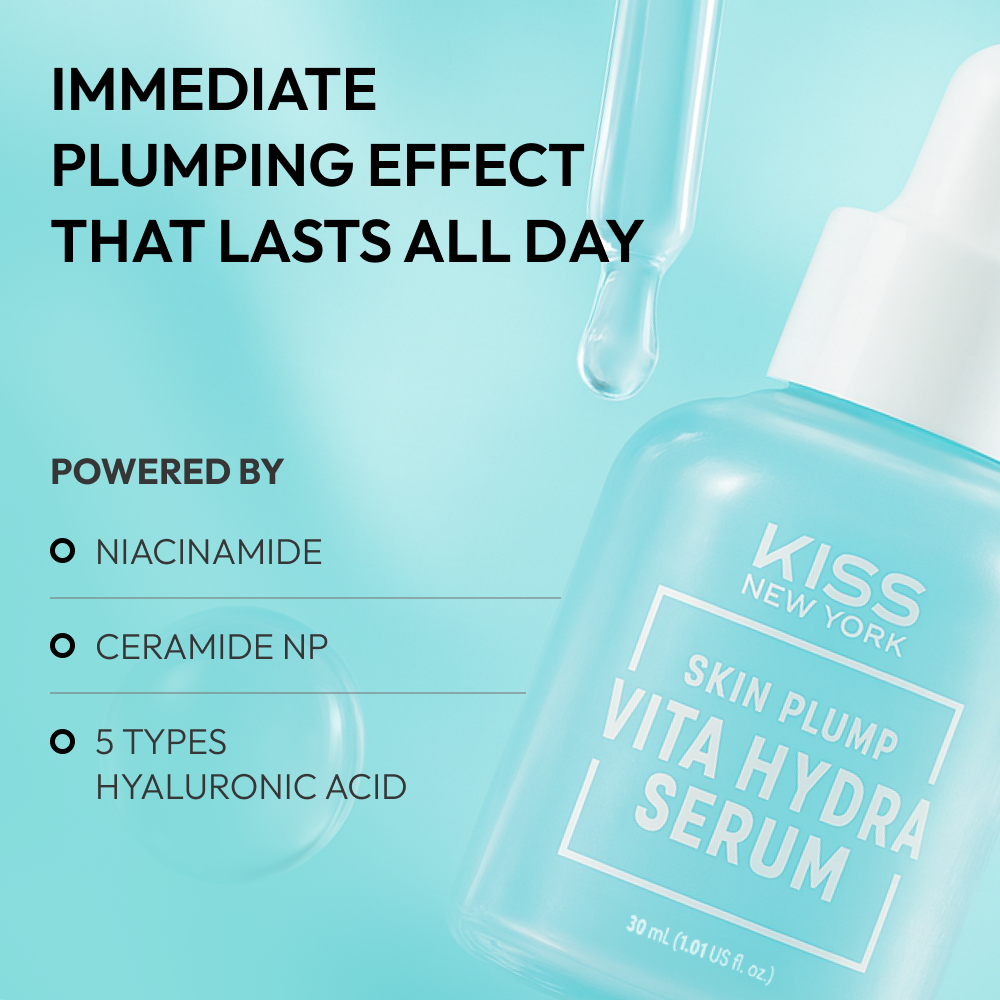 Transform dry, dehydrated skin into a dewy, glowing complexion with KISS NEW YORK Vita Hydra Serum. This multi-vitamin powerhouse is expertly formulated to deliver intense hydration deep into the skin's layers while strengthening the moisture barrier Featuring a proprietary Deep Hydration Complex of 5 types of Hyaluronic Acid and Ceramide NP, it instantly relieves tightness and locks in moisture for a plump, smooth finish. Enriched with Centella Asiatica, it soothes sensitive skin, leaving it balanced and refreshed without any sticky residue
