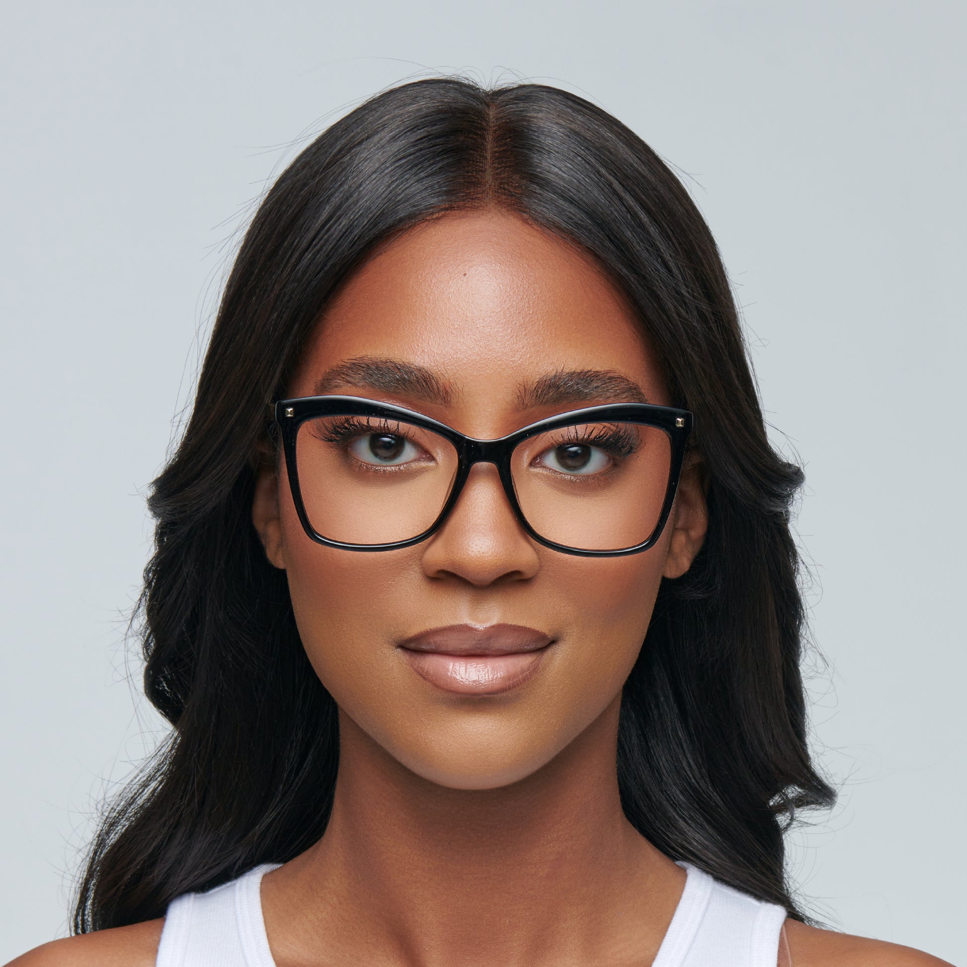 - Elegant cat-eye design: A classic black square rectangle frame highlighted by sophisticated gold temples for a bold yet refined aesthetic.