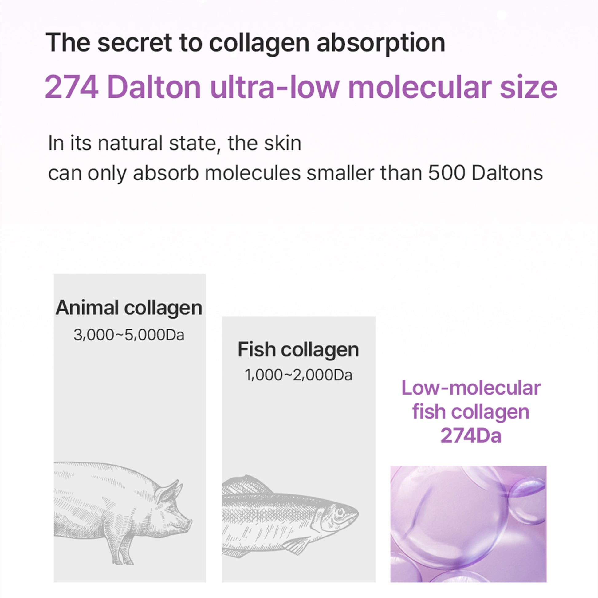Tiny 274Da collagen sinks in deeply where your skin needs it most. -